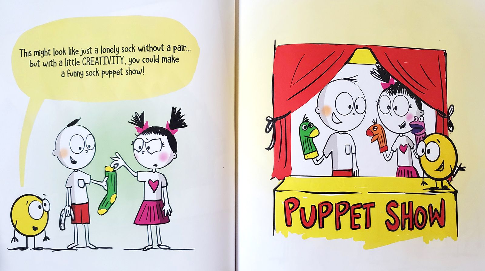 Illuminating the various ways people can engage in creative activities, like using the imagination, repurposing items, and putting on a sock puppet show, the book shows how being creative can help us overcome challenges and make life more enjoyable.