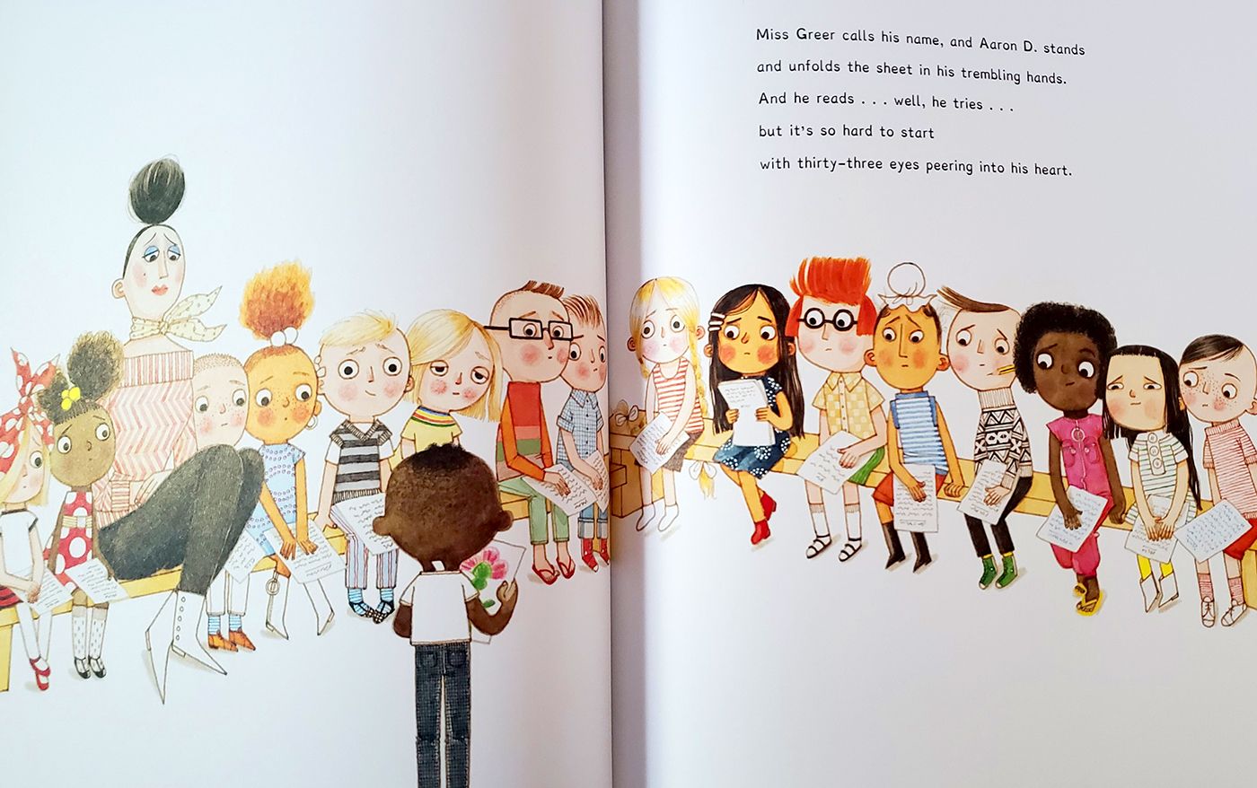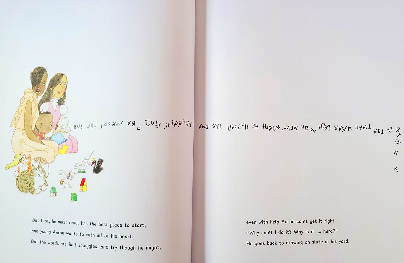 When his teacher asks the class to write a story, Aaron struggles, as letters just look like squiggles and he can't get a single word down.