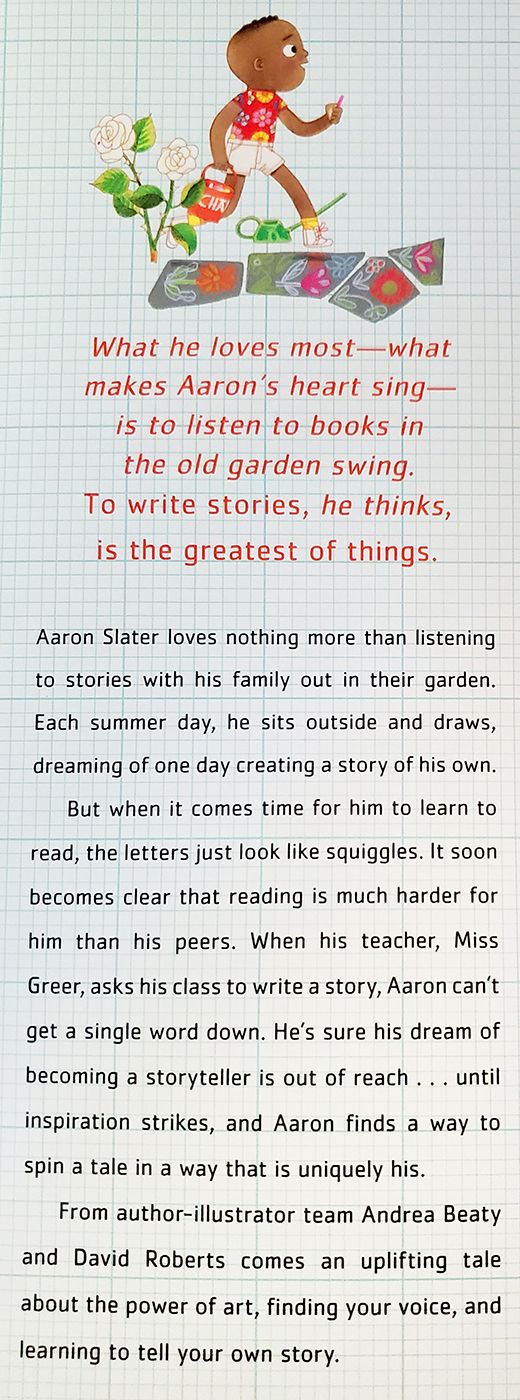 Acclaimed children's book author Andrea Beaty with titles including Ada Twist, Scientist and Iggy Peck, Architect, presents Aaron Slater, Illustrator — a delightful story about an aspiring artist whose dreams become reality through his creativity and passion.