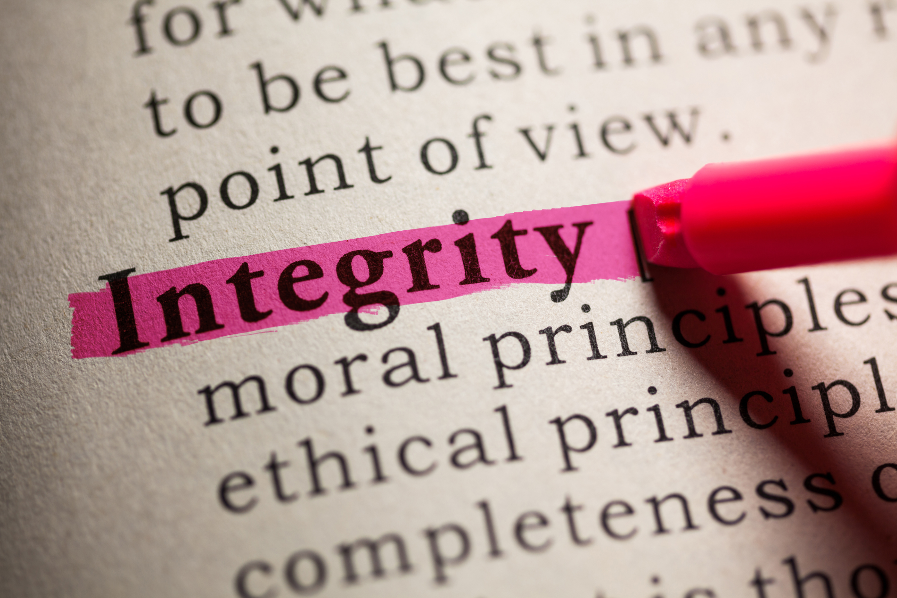 Integrity in general is defined as the quality of being honest and having strong moral principles; this moral understanding and personal values are the cornerstones of integrity.