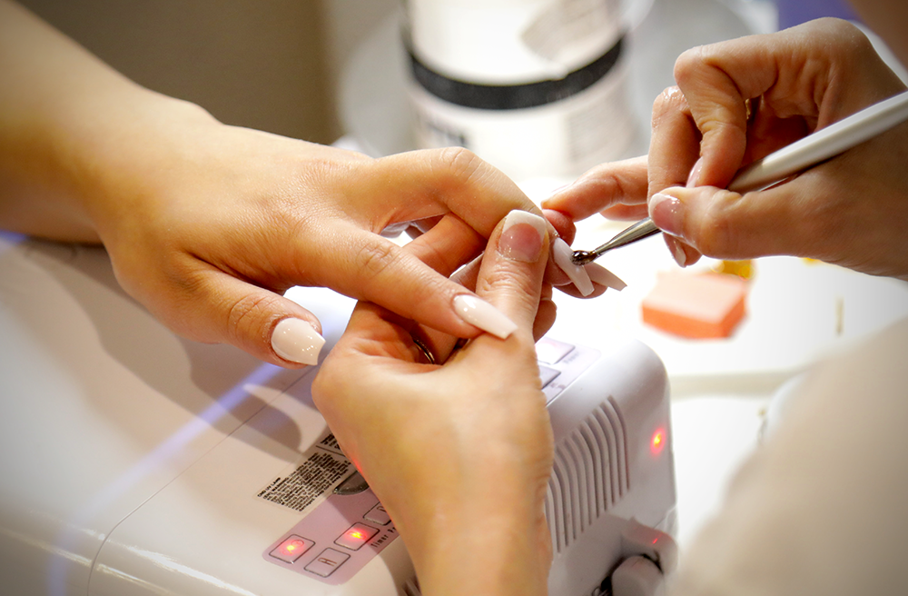 Once the acrylic powder has been applied to the nails, they generally require UV light to cure.