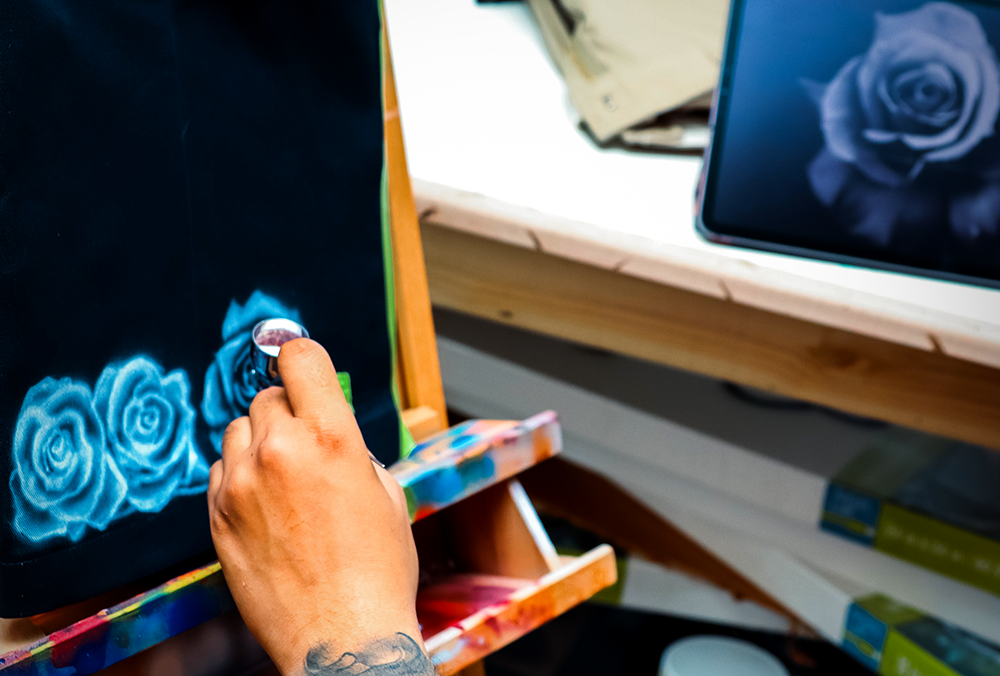 Gently squeeze the trigger and move the airbrush back and forth to create your design.