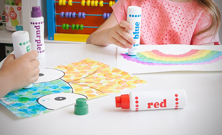 These brightly colored paint sticks are easy to use and dry quickly, making them the perfect art materials for curious little ones.