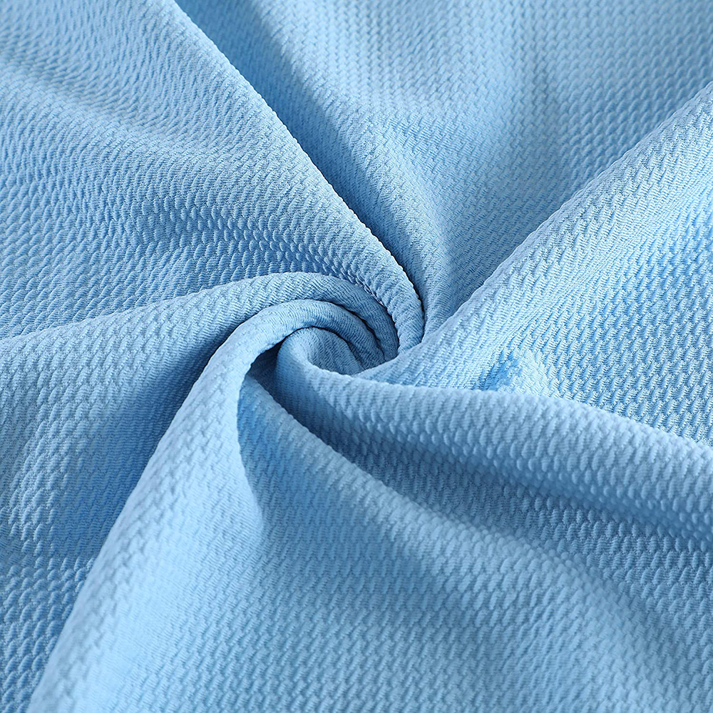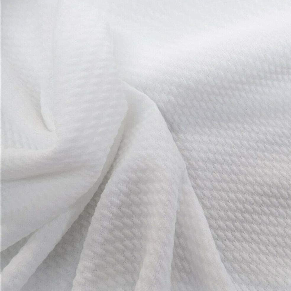 This high-quality polyester spandex blend boasts 4-way stretch, a textured side, and measures 55 inches wide by 1 meter in length - perfect for tops, dresses, skirts, or pants that require structure.