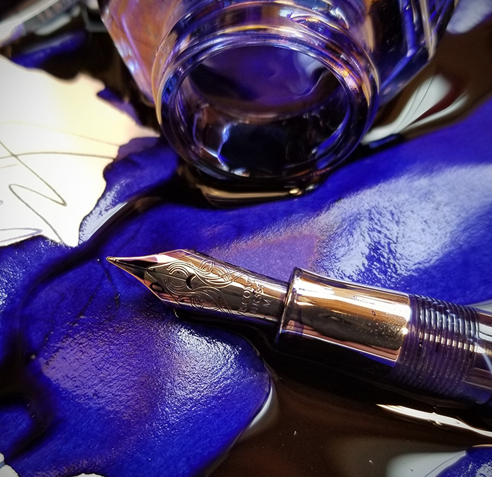 The ink reservoir in a calligraphy pen is typically much smaller than in a fountain pen, as calligraphers often need to change colors frequently.