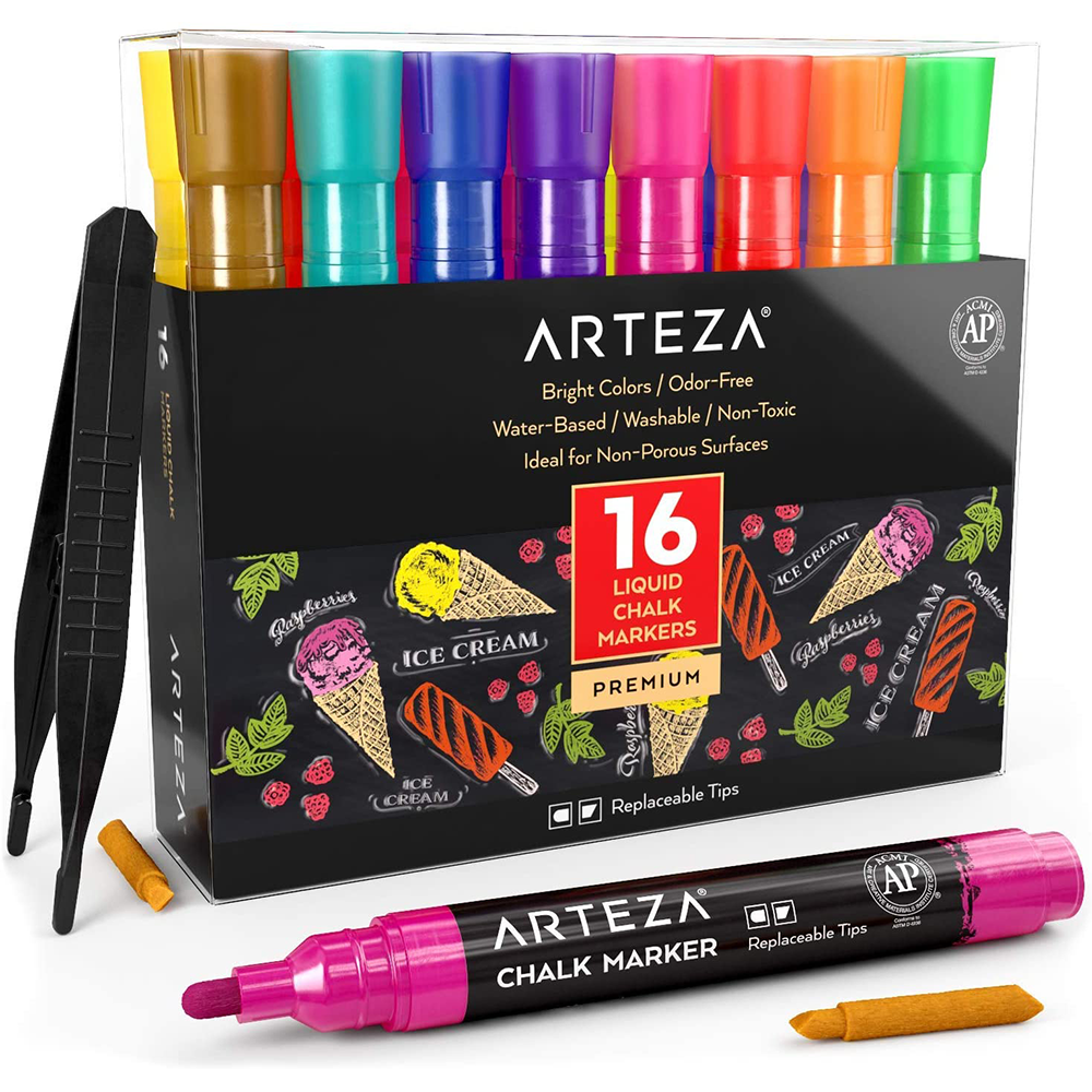 Arteza also offers a variety of liquid chalk marker sets, including pastel colors, metallic colors, and white.