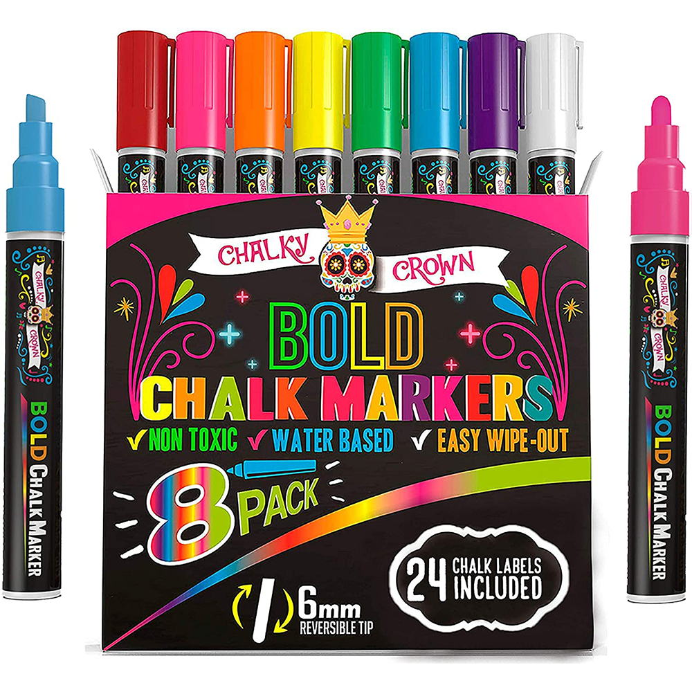 These chalk markers are water-based and nontoxic, making them perfect for anyone to use.