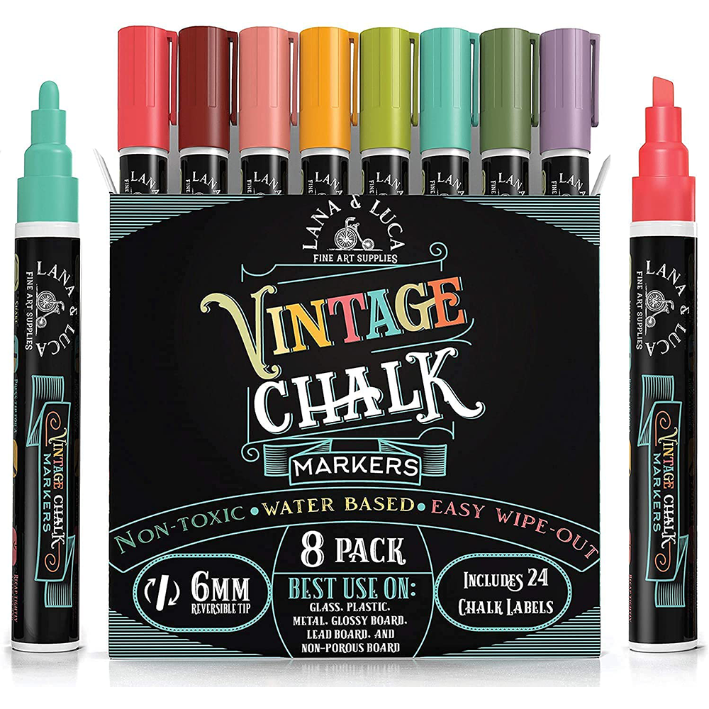 Their 8 vintage colors are perfect for adding a little personality to any project, and their dustless, liquid chalk formula makes them safe for all ages.