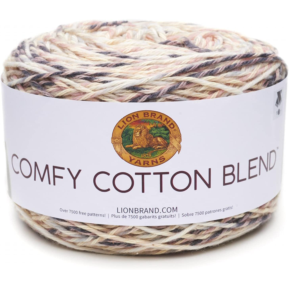 Comfy Cotton Blend Yarn from Lion Brand Yarn Company is a blend of 50% cotton and 50% polyester, making it machine washable and dryable.