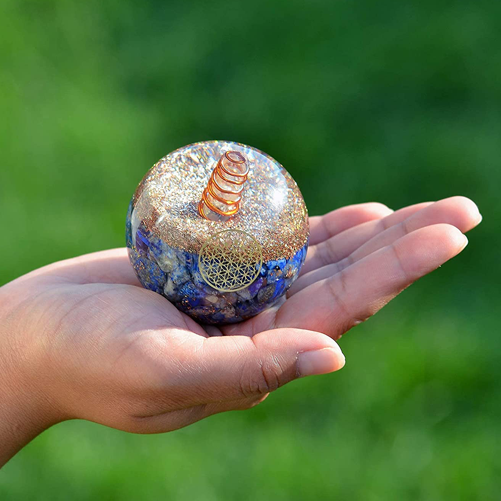 So, if you are in search of a crystal that will aid in developing an unyielding connection with your spiritual center, look no further; this Orgonite Lapis Lazuli Crystal Sphere is just for you!