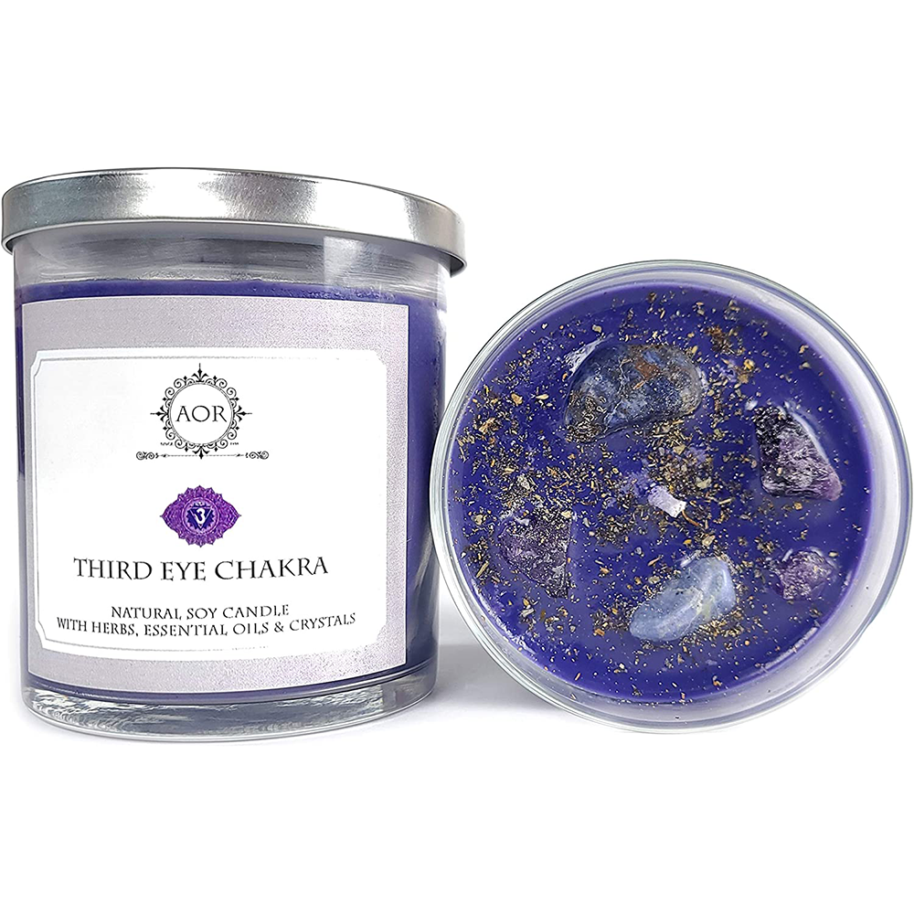 If you're seeking to awaken your spiritual journey, the Third Eye Chakra Crystal Soy Candle from Art of the Root Ltd. is an ideal way to do so!