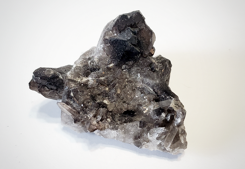 Smoky quartz is a dark brown to black variety of quartz that has a translucent to opaque appearance.