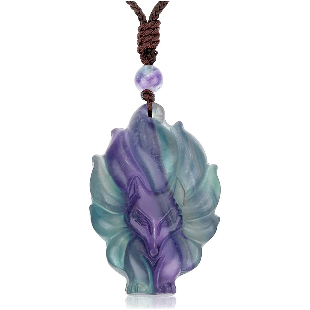 The Fluorite Fox Necklace is hand carved from natural fluorite gemstone, making it a quality and durable piece of jewelry.