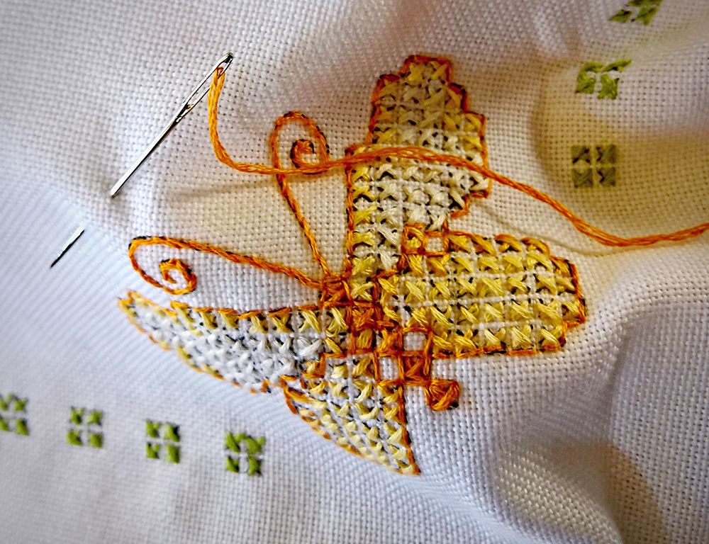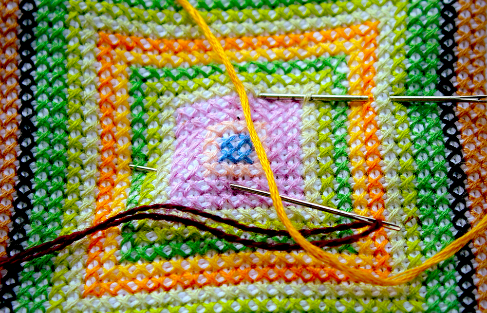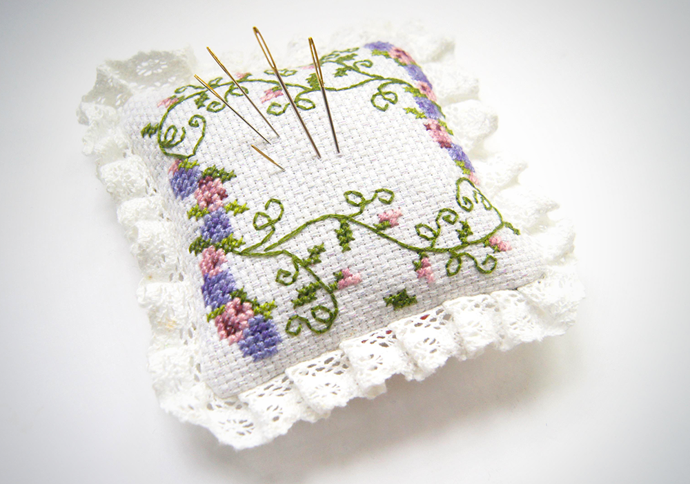 Embroidery needles have a sharp point and a large eye, while cross stitch needles have a blunt point and a small eye.