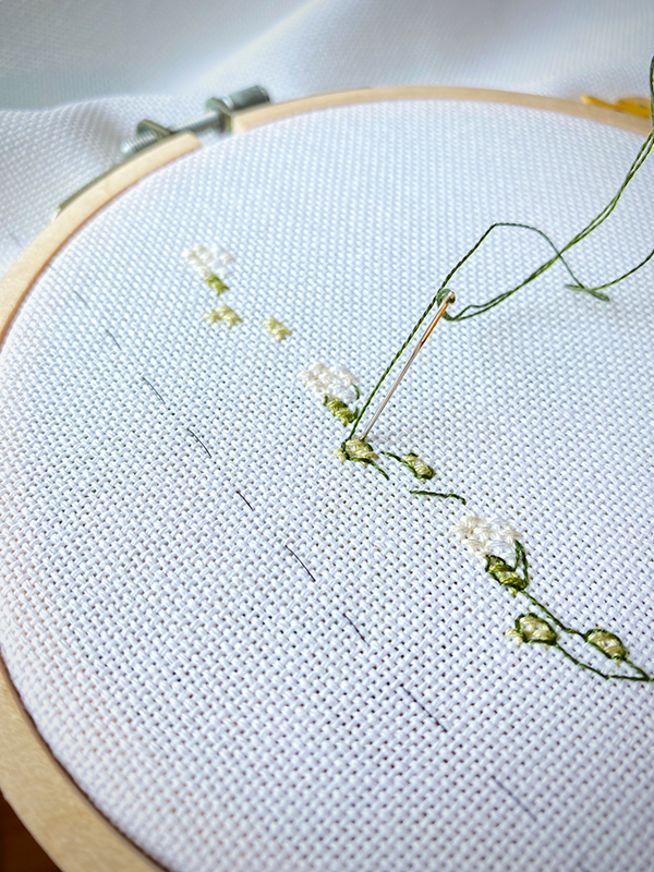 When you reach the end of an embroidery thread, simply tie a knot in order to keep it from unraveling.