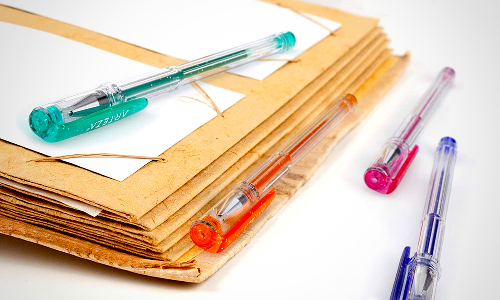 Gel pens are also great for writing in small spaces because the fine point allows you to fit more words on a page.
