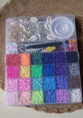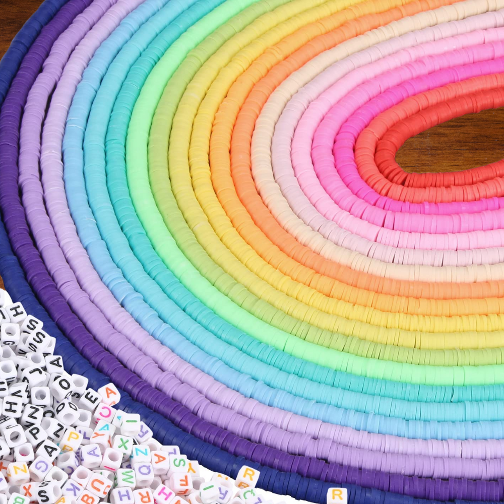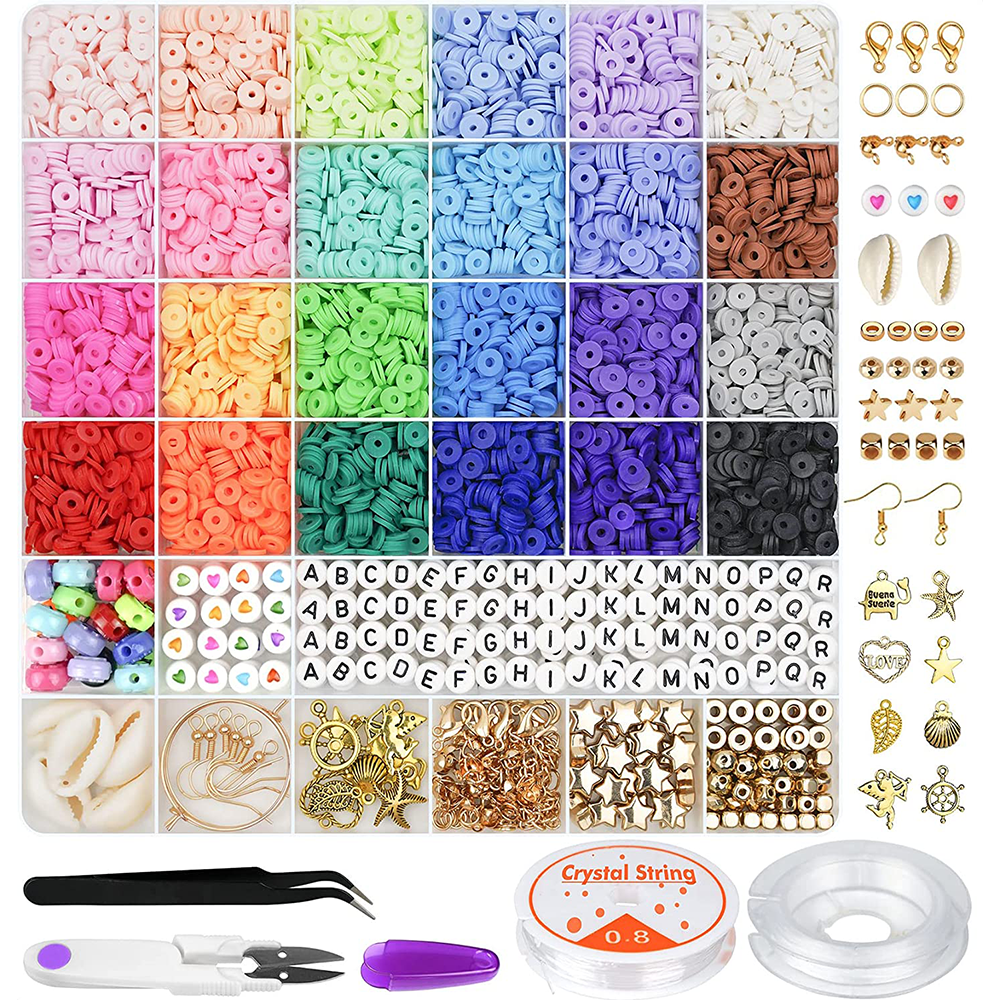 With 5520 pieces of flat polymer clay beads in 24 cheerful hues, as well as 550pcs of charms and accessories, such as letter beads, smiley faces, colorful heart beads, shells, pendants, and more--this kit has it all to fashion stunning bracelets.