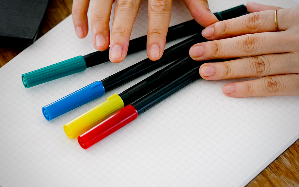 You want something that will last, won't bleed through the paper, and has a variety of colors.