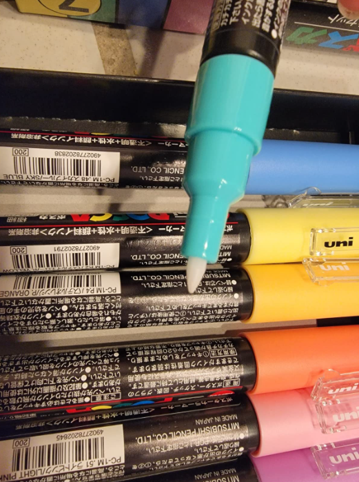 Posca markers are also known for their ability to blend easily with one another to create custom colors and effects.