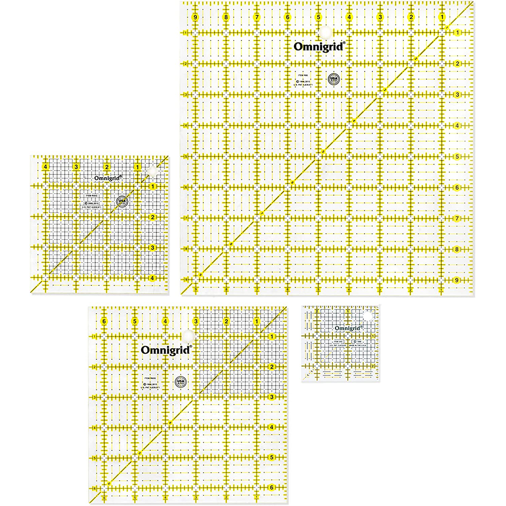 With their consistent precision and wide range of standard features, the Omnigrid set of square rulers is the perfect choice for all your quilting needs!