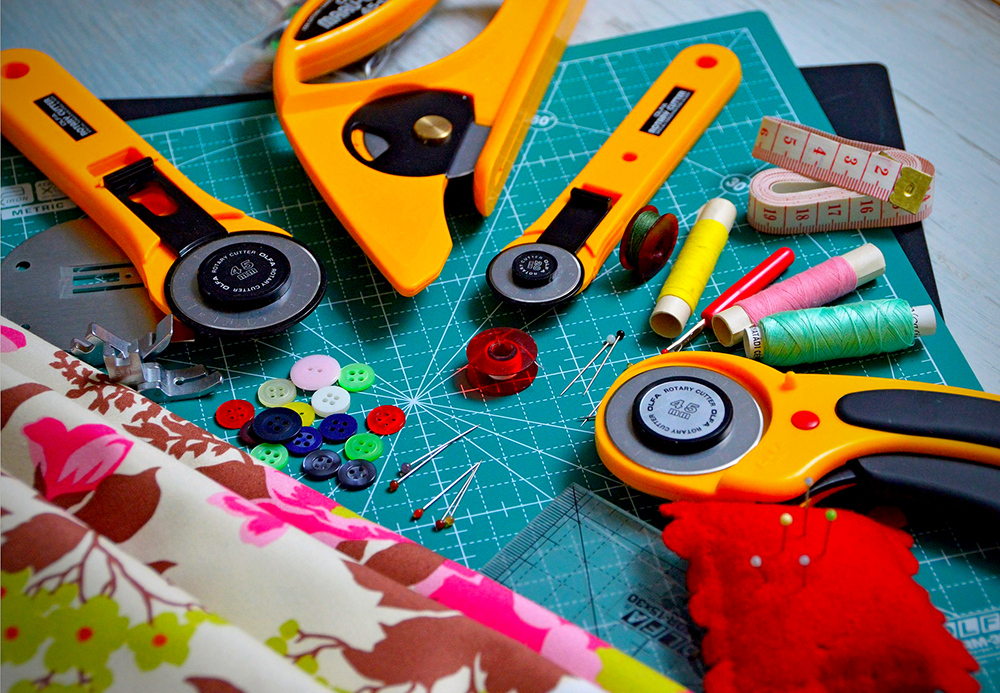 Scissors are fine for small tasks, like trimming a seam allowance or clipping a thread, but for anything more substantial, a rotary cutter is the way to go.
