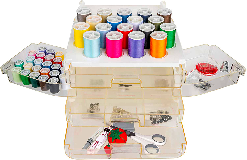 The Sew-It-Goes Sewing Box Organizer can hold over 40 spools of thread, so you'll always be prepared for your next project.