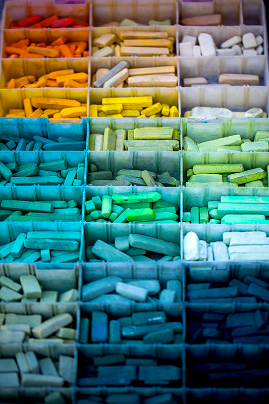 Soft pastels have a velvety texture and deposit saturated hues onto surfaces.