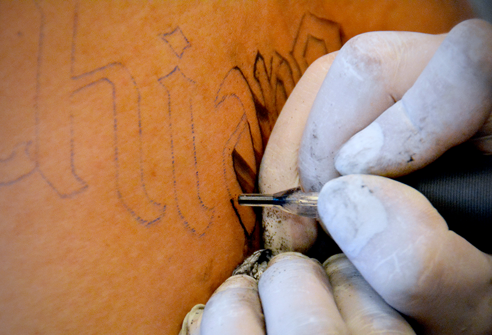 Shaders have multiple needles that deposit more ink at once, giving the tattoo a solid color.