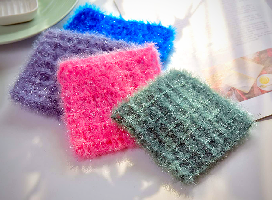 Yarn is super absorbent and durable, making it an ideal material for dish cloths and scrubbies.