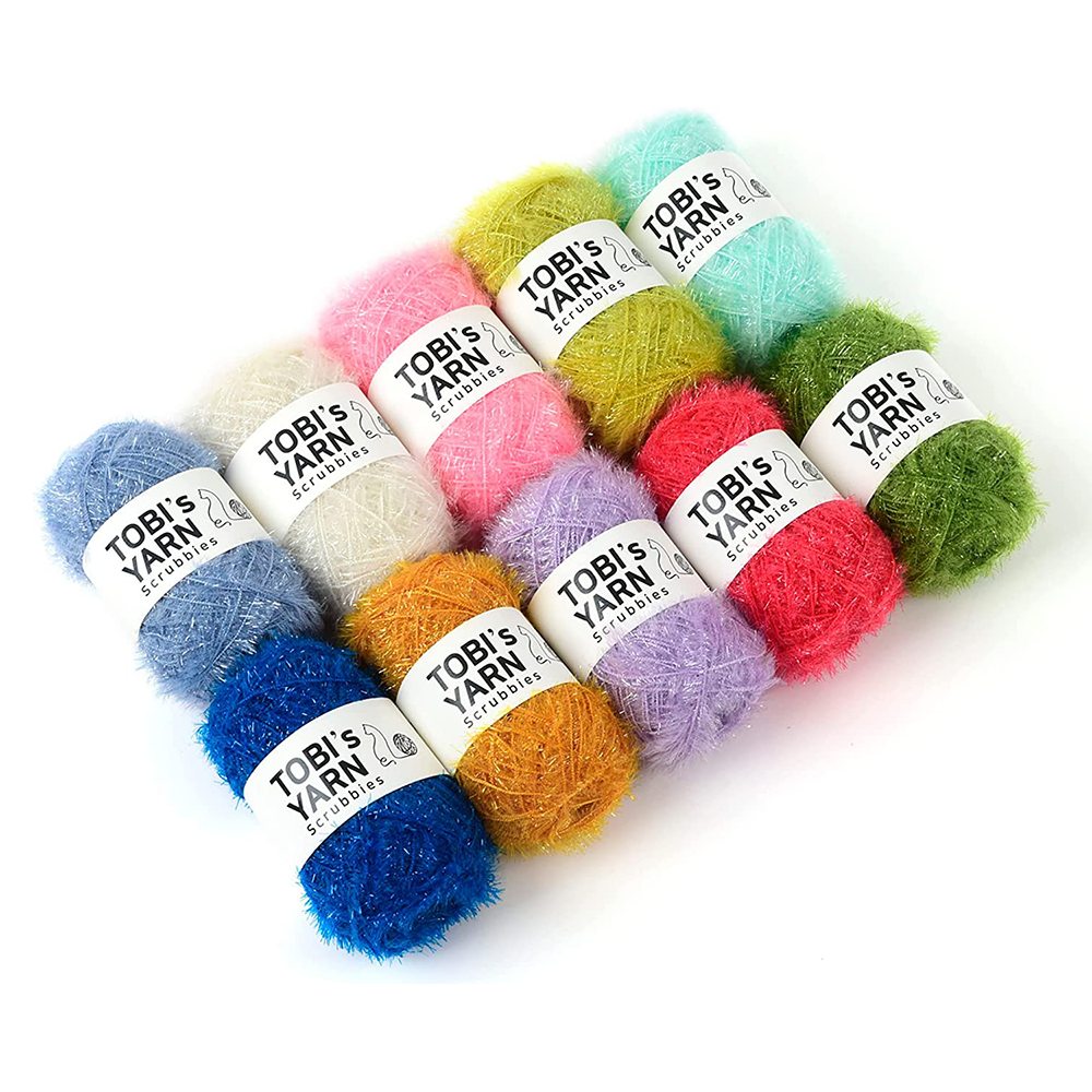 Tobi's Yarn Sparkling Polyester Pack is the perfect yarn for creating dish scrubbies.