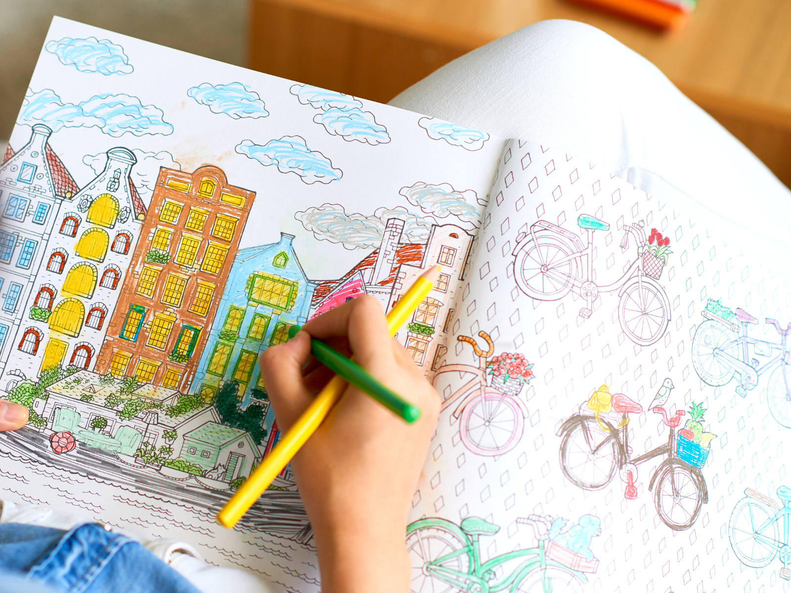 Adult coloring books with thicker, high-quality paper are ideal.
