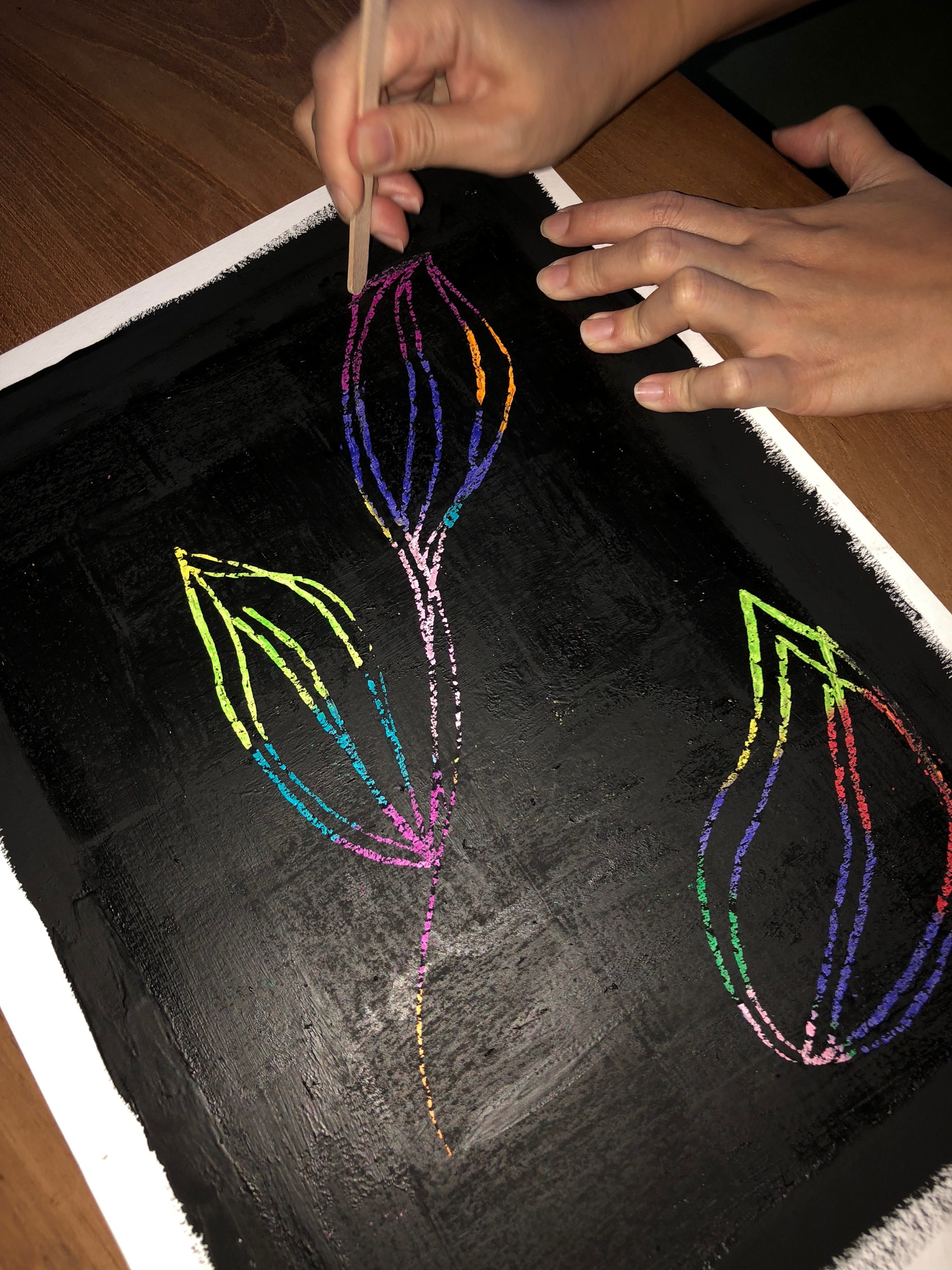 Experimenting with different crayon pressures and paint thicknesses can yield a variety of results.