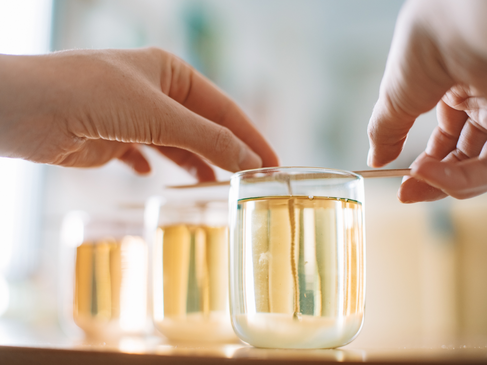 When pouring the melted wax into your containers, make sure that you pour slowly and evenly to ensure a uniform finish.