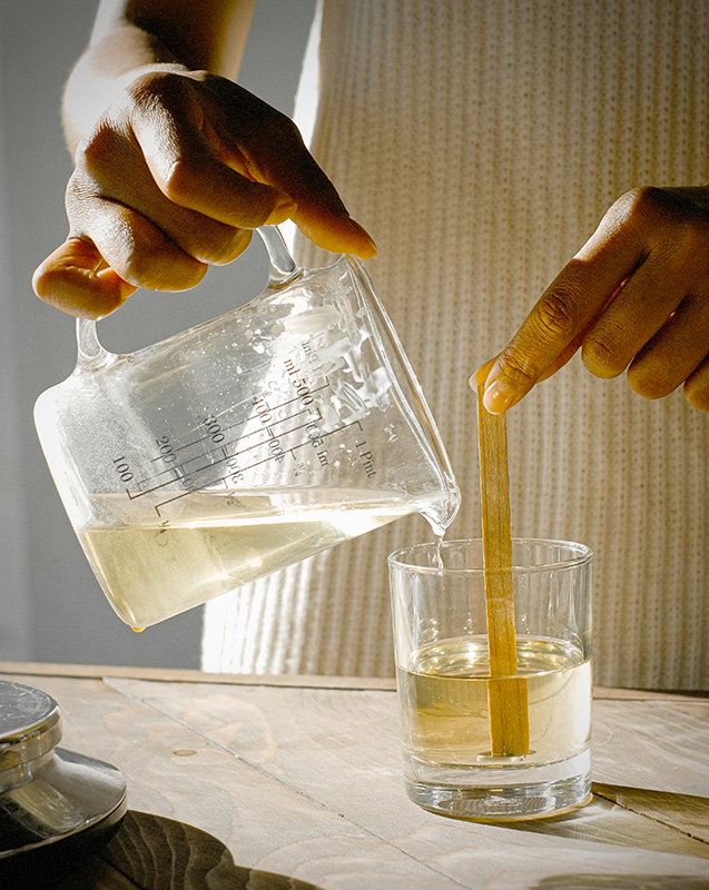1) Start by melting the wax in your pouring pot on low heat.