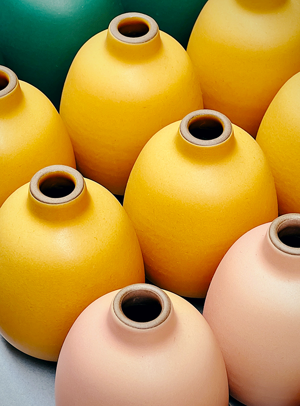 The wood firing process creates a unique surface finish.