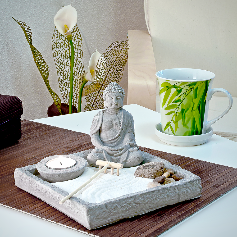 - Placing objects with meaningful symbolism, like a Buddha statue or candles.