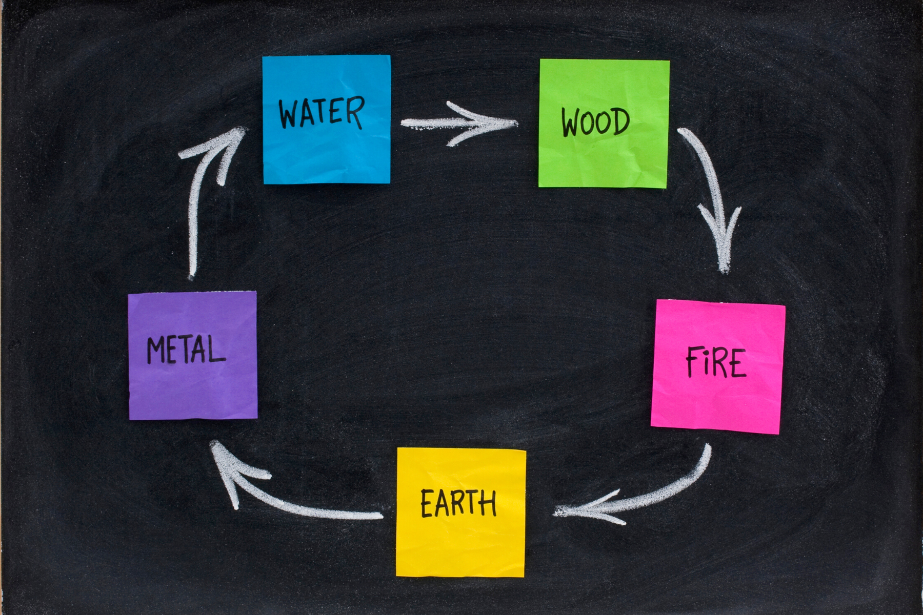 The five elements in Feng shui are wood, fire, earth, metal, and water.