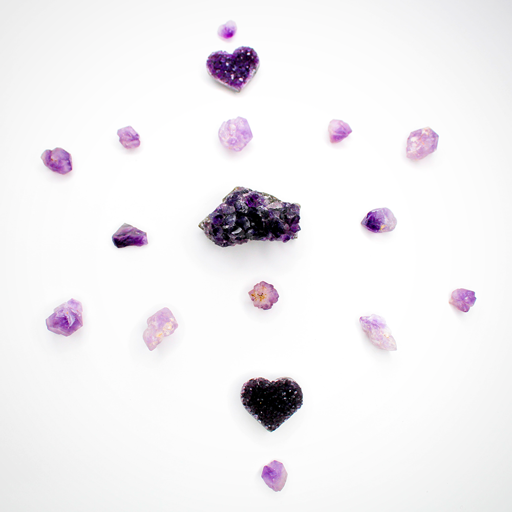 Black tourmaline is great for protection and grounding, while amethyst is great for calming the mind and balancing energy.