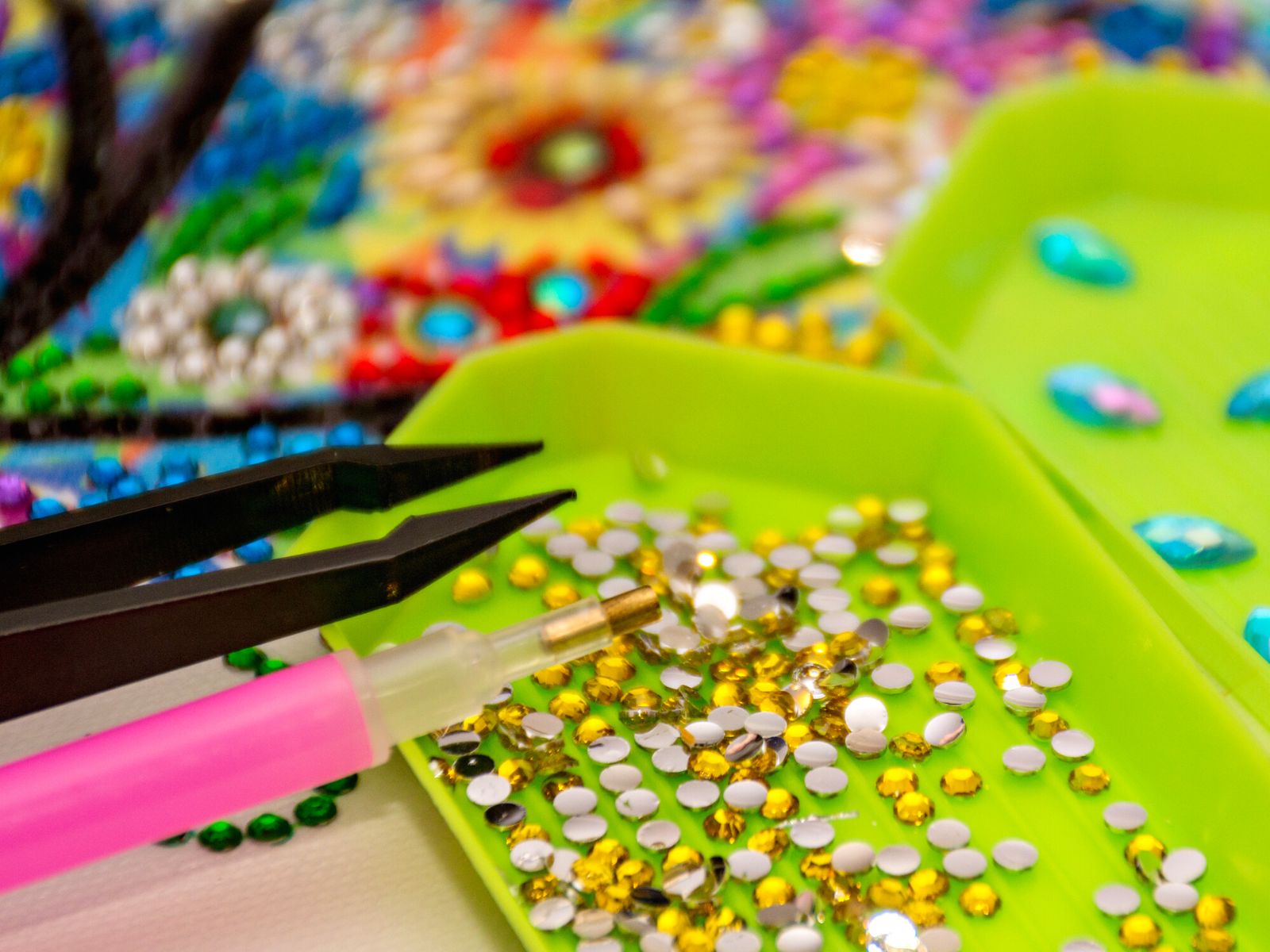 Also, it’s best to use tweezers or a diamond applicator when handling the diamonds since they can be tricky to pick up with your fingers.