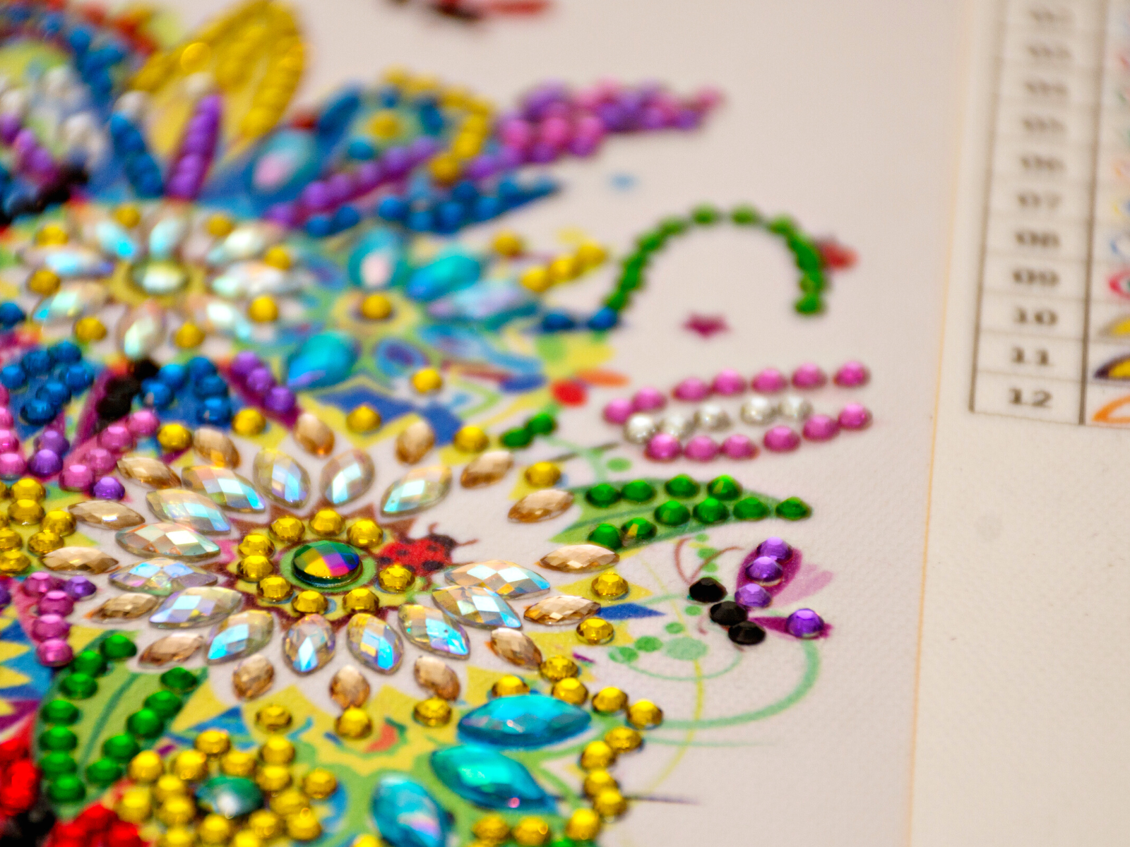 Clear your workspace before beginning, and make sure to have plenty of light so you can easily find the right diamond color.