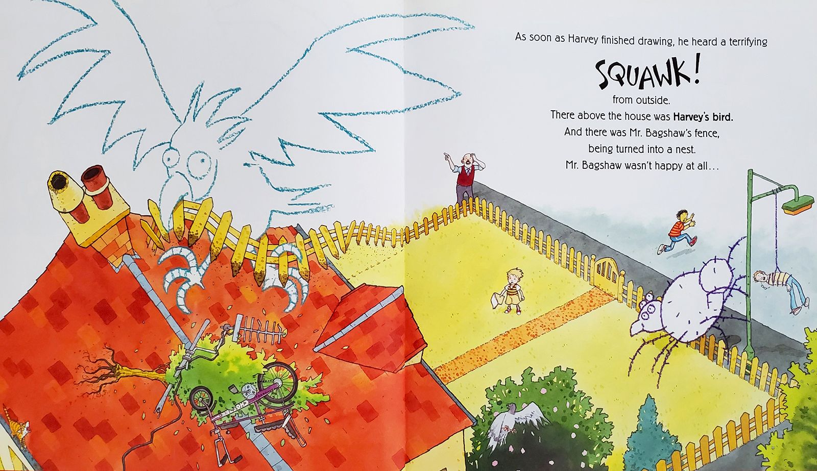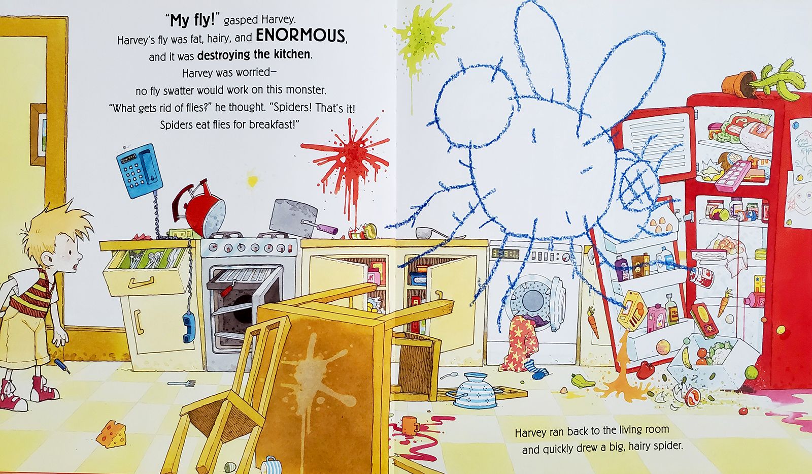 When Harvey does his best to clean up his mess supplies plenty of surprises, humor, and mock horror allowing readers to explore the power of art in a fun and meaningful way.