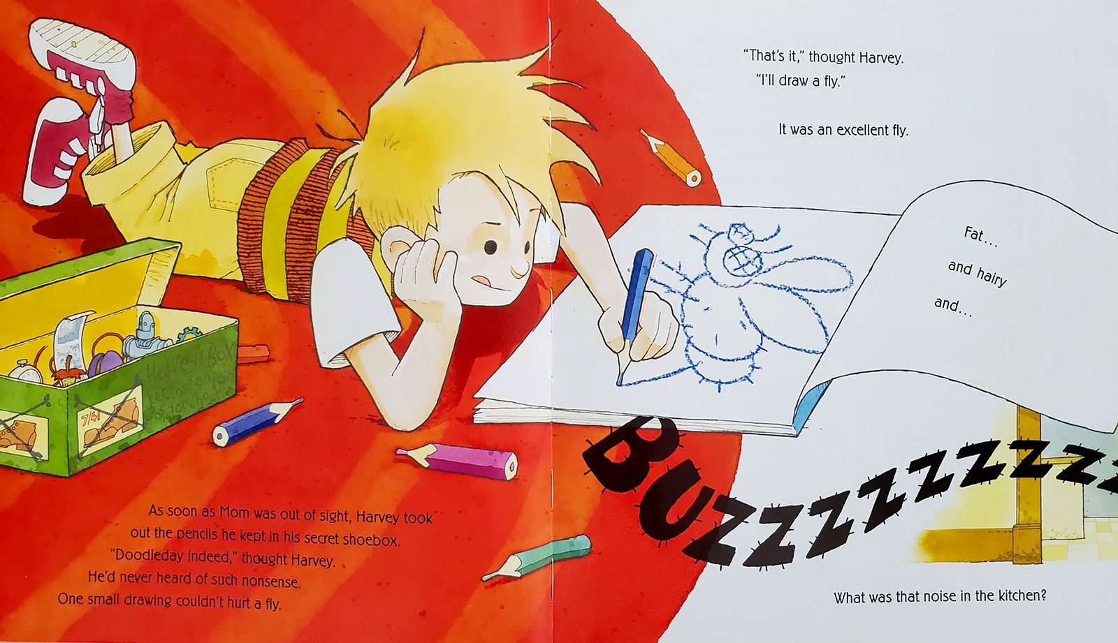 Convinced that surely drawing couldn't hurt, he doodles one little fly and sets in motion a wave of extraordinary events.