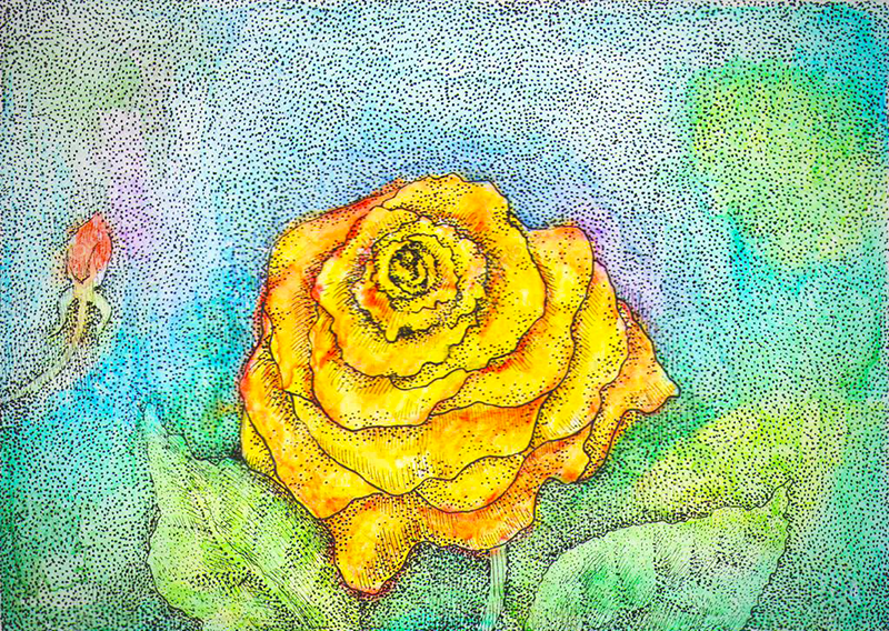 Dot art has a variety of forms and is also known as stippling, pointillism, or puncture painting.