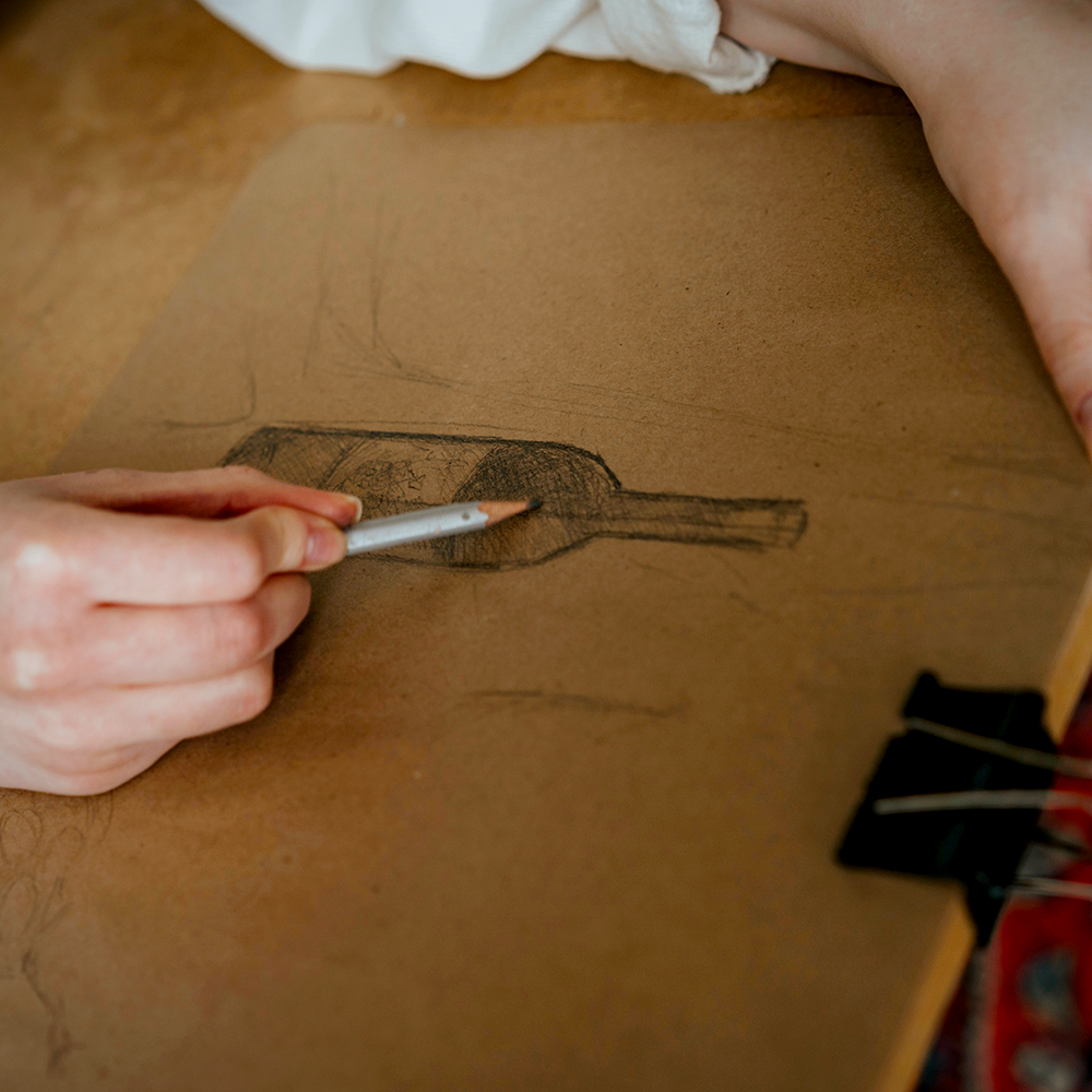 You can use any type of charcoal for this step, but we recommend using vine charcoal or a charcoal pencil.