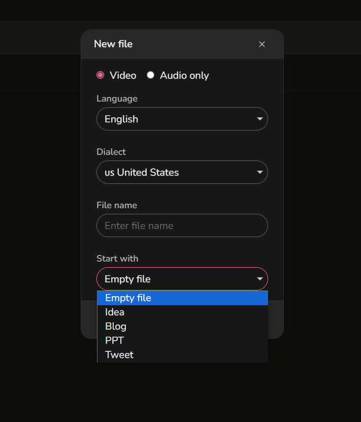 Start with your text, choose your AI voice, let AI create the media, and voila!