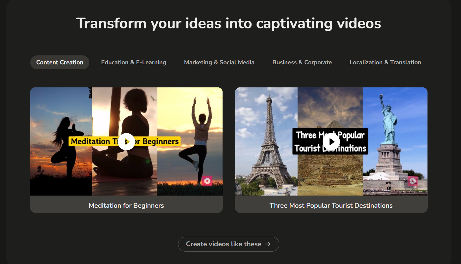 It's ideal for creating educational content, marketing and social media videos, corporate presentations, and even localized translations.