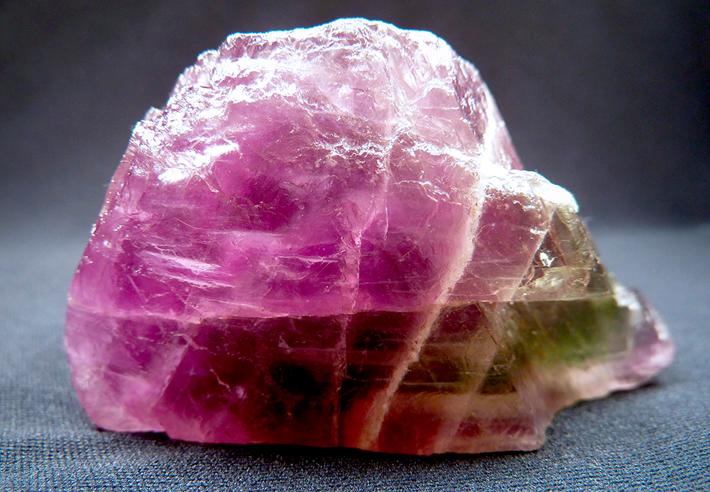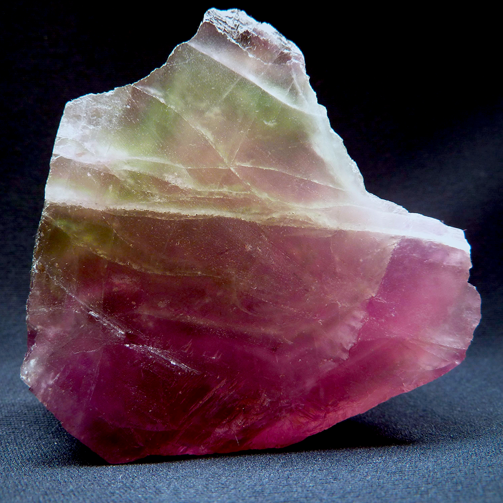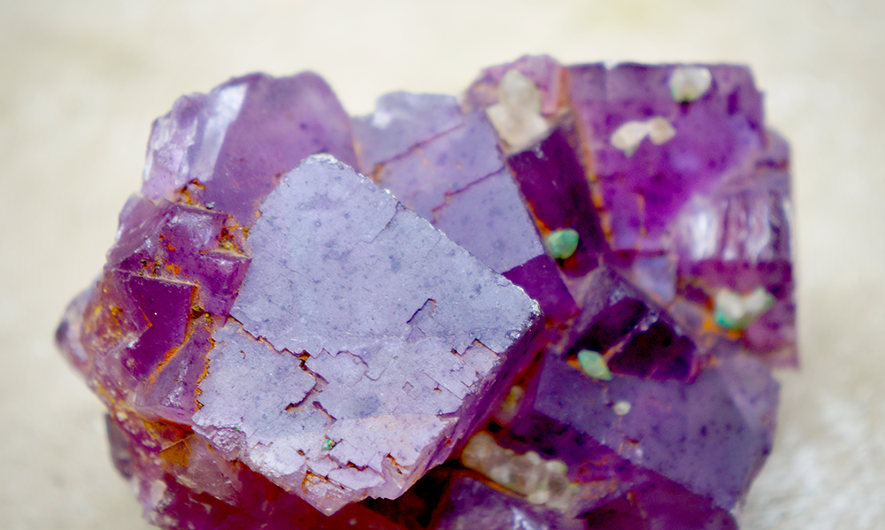 The different colors of fluorite are a result of impurities, usually hydrocarbons, in the crystal structure.