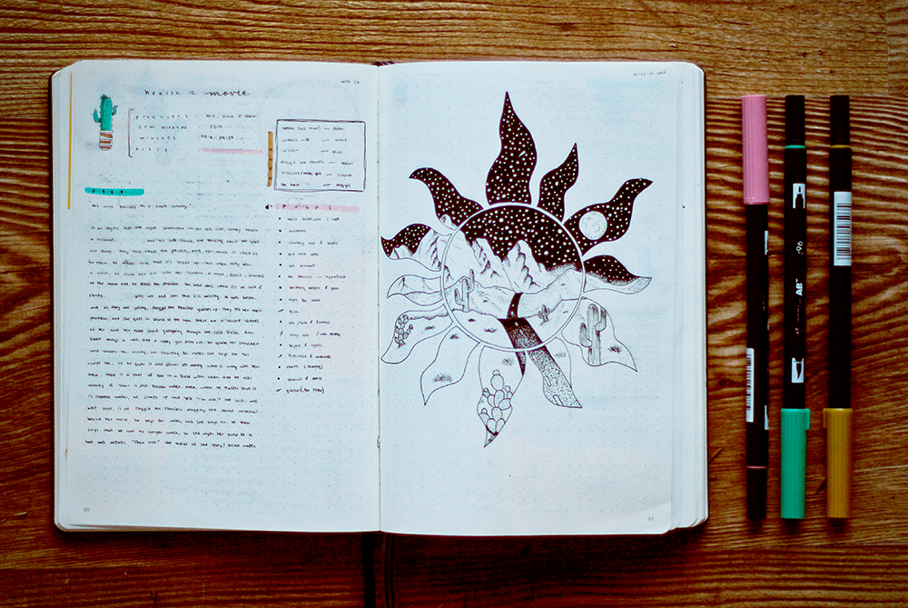It allows you to mix media, such as drawing and writing, or even incorporate elements of bullet journaling and art journaling into a single book.
