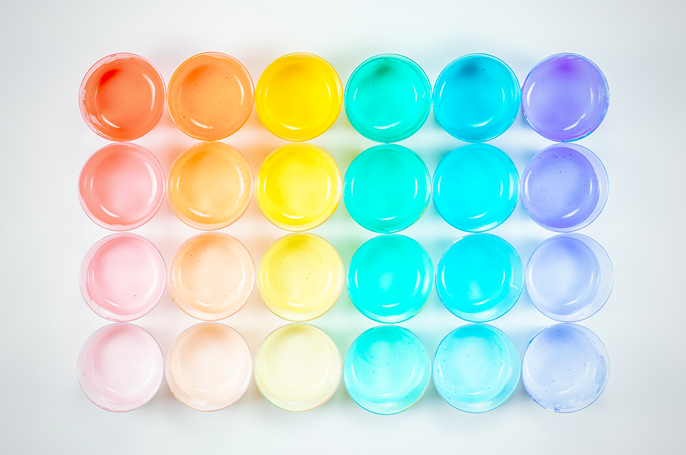 Add an equal amount of pouring medium to each color and mix well with a stir stick.