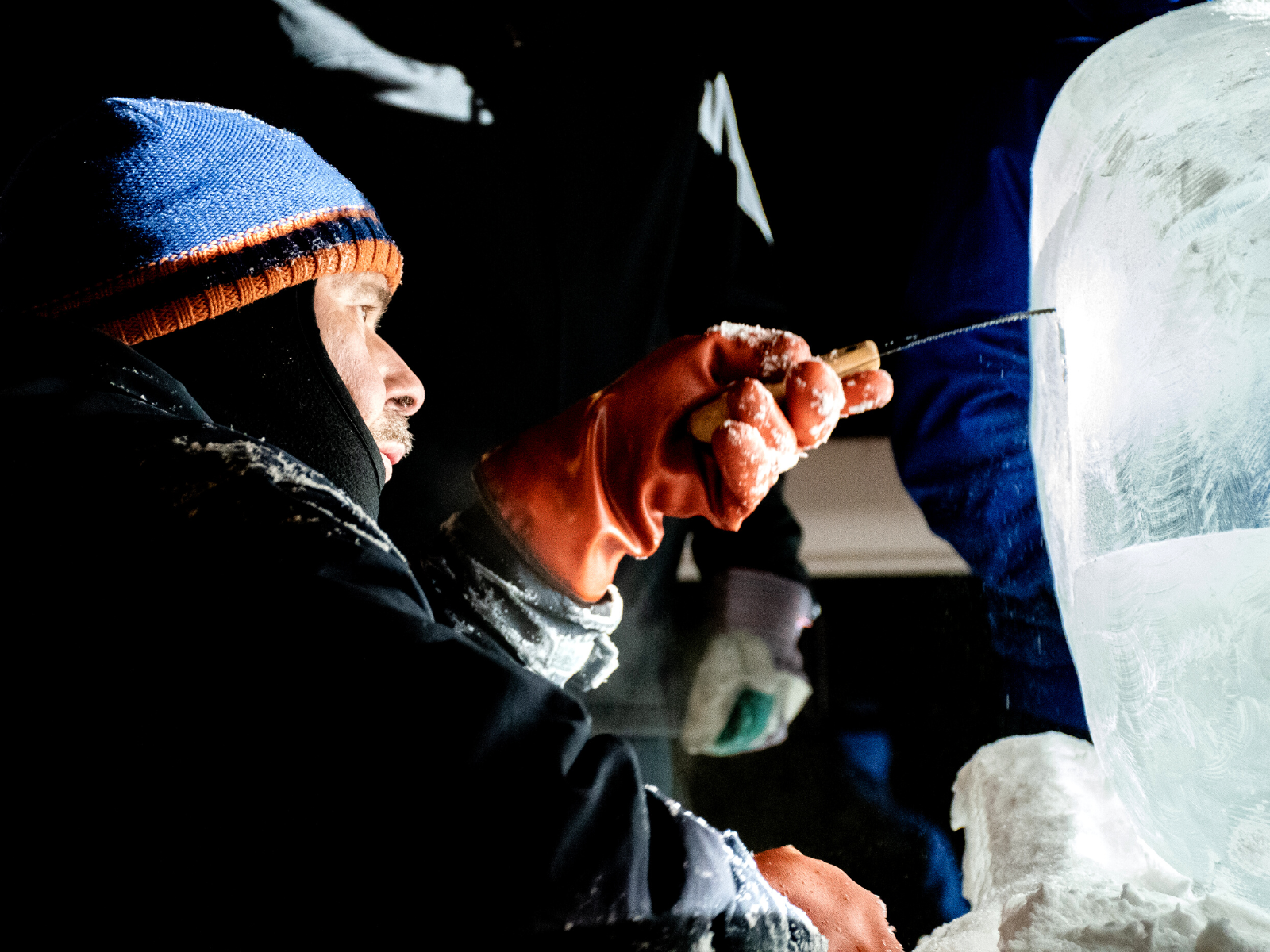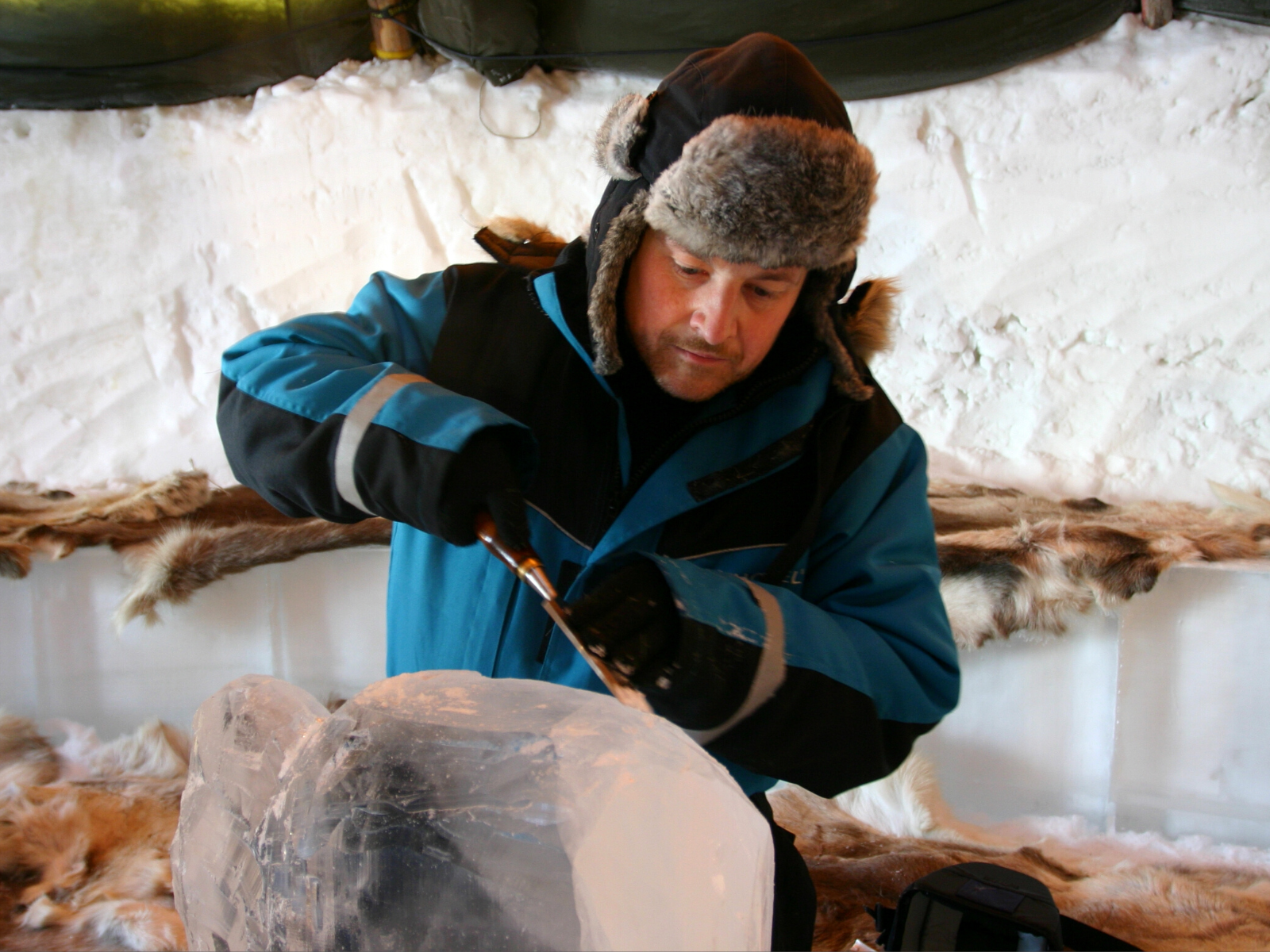 You can often find ice carvers participating in an ice festival or the snow sculpture festival, where they create with ice and snow.
